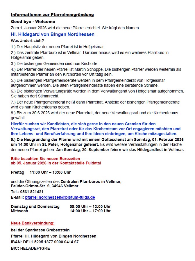 Pfarrgemeinden und weitere kirchliche Einrichtungen bei der Erstellung von Schutzkonzepten. Ein Beraterstab mit unterschiedlichen Fachexpertisen ergänzt diese Arbeit. Für die Betroffenen selbst gibt es unabhängige Ansprechpersonen. Weiterhin begleitet der gemeinsame Betroffenenbeirat der Bistümer Limburg und Fulda kritisch die Aktivitäten des Bistums Fulda in den Bereichen Prävention, Intervention und Aufarbeitung. Doch wir wissen: Es braucht noch mehr. Nur durch eine offene Auseinandersetzung und eine klare Haltung gegenüber Missbrauch und Vertuschung kann Vertrauen zurückgewonnen werden. Diese Veränderung darf nicht still und im Verborgenen geschehen – sie muss sichtbar und spürbar sein. Nur wenn wir entschieden aufarbeiten und Konsequenzen ziehen, können wir den Blick nach vorne richten.
